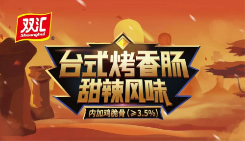 壹峰創新助力雙匯集團,推出了大熱IP王者榮耀風格的奧爾良風味烤香腸。借勢大熱IP,聚焦游戲場景,給消費者建立了全新場景,勾引出消費者的情緒,從而引起消費者的共鳴。并以此延伸出“游戲夜宵”火腿腸的新品類,吃出新口味,玩出不一樣,賦予品牌獨有的情感價值和圈層特質。