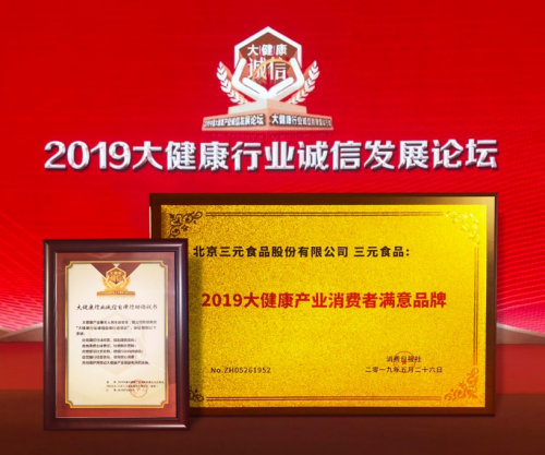 近日,由消費日報主辦的“2019中國大健康產業誠信發展論壇暨大健康行業誠信自律倡議行動”在京舉辦。三元食品榮獲2019大健康產業消費者滿意品牌獎。這一獎項的獲得,是對三元食品在推動中國乳業健康發展中所作貢獻的重要肯定。
