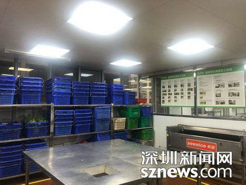 除了座談會外,與會嘉賓還參觀了“廣東省A級食品安全示范企業”單位——鑫輝餐飲的食品生產加工、倉庫、微生物檢測化驗室等場所。據工作人員介紹,鑫輝餐飲集團總部建有2千平方米的廚房,將原材料的洗揀、洗凈、切配、烹飪、儲存、配送等加工要素實現標準化,具有一批次高達一萬多人的配送資質,其在透明廚房管理上具有豐富的成功經驗。