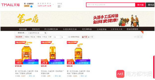 天貓第一店官方旗艦店也有銷售頭道壓榨花生油