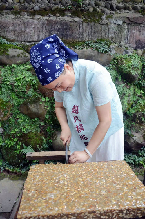 “趙氏核桃糖”采用天然核桃仁,用土胚陶缸制作,主要原料麥芽糖漿,人工拌料,自然晾制而成,整個生產過程全部采取古法制作。它低糖、純真酥軟爽口,具有補腦潤肺,緩解疲勞之功效。