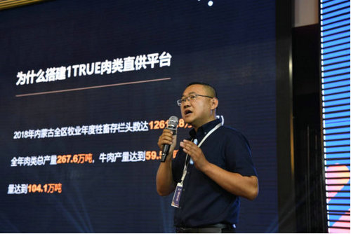 隨后,拜歐牧業北京公司運營總監趙勇良先生就1TRUE肉類直供的運營模式及發展方向做了講解。趙勇良表示,隨著牛羊肉食材在餐飲消費中熱度持續上升,消費者更加關注牛羊生長環境和食品安全,這就更需要品牌食材,例如地域出品、牛羊品種、企業品牌等。據國家農業部數據顯示,2018年內蒙古全區牧業年度牲畜存欄頭數達12614.8萬頭(只)全年肉類總產量267.6萬噸,牛肉產量達到59.5萬噸,羊肉產量達到104.1萬噸。保守估計,每噸按價值2萬元計算,僅內蒙古的牛羊肉交易量就在300億元以上。