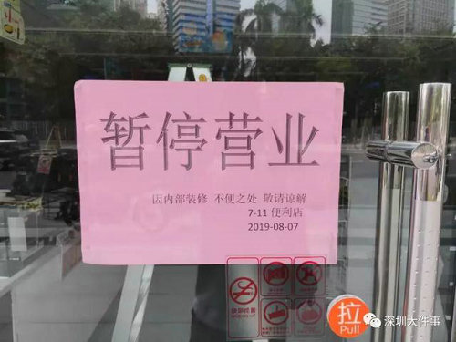 該店的玻璃門張貼了“暫停營業”的告示,時間為8月7日,與網傳視頻的發布時間8月6日僅相隔一天。