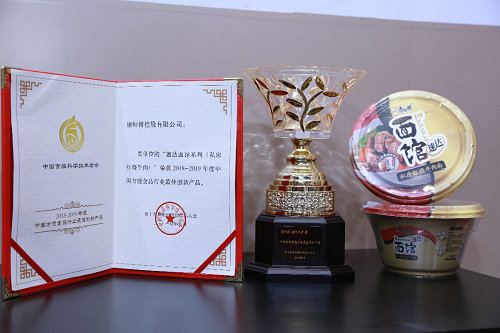 大會期間,一年一度的最佳創新產品發布作為重磅環節尤其吸引了各界的關注?祹煾低瞥龅乃龠_面館憑借三大技術突破摘得2018-2019年度中國方便食品行業最佳創新產品獎,主打營養和健康賣點的鮮疏面榮獲行業優秀創新產品獎。