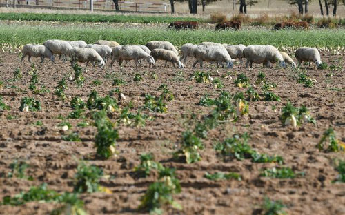 羊群在蘿卜地里低頭覓食。新京報記者 王穎 攝