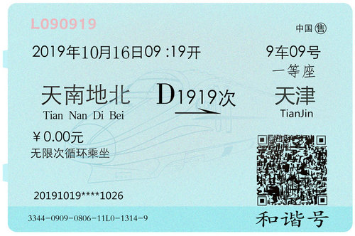 地鐵2號線(9站)濱海國際機場站→天津站→地鐵3號線(3站)營口道站