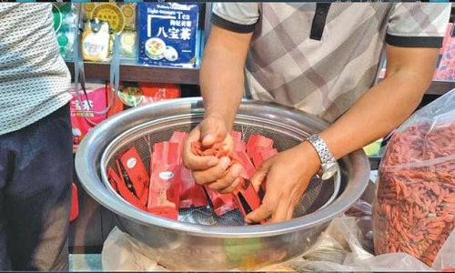 在市場內,一名前來購買枸杞的批發商告訴新京報記者,硫磺加工過的枸杞,味道呈現酸、澀、苦感,雖然批發時這種枸杞有標注,但在銷售終端,不可能向消費者說明是否添加了其他東西,“枸杞有沒有問題,自己知道就行”,“這是行業內潛規則”。