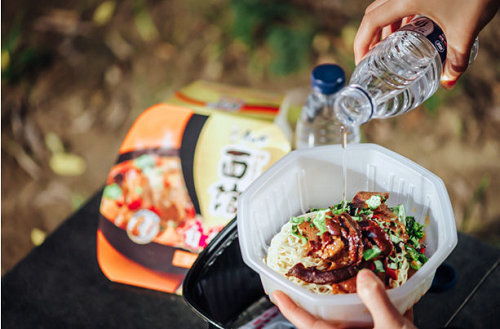 不過,對于資深方便面愛好者而言,食材和工藝還不是“自熱面”最具吸引力的地方。事實上,“自熱面”帶來的品類創新更在于:在白領正餐、家庭出游、戶外登山徒步、外出垂釣、長途旅行等場景中,僅用1瓶飲用水,通過自熱,短短15分鐘就能夠享受到面館般的體驗。