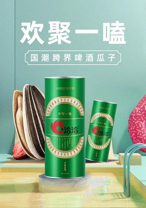 與此同時,洽洽也洞察到“年輕人更愛嘗鮮獵奇”這一 “買點”,因此聯手另一經典國貨品牌青島啤酒,以滿足消費者“好奇心”需求為出發點,開創了瓜子界國潮跨界新品“酒味瓜子”,不僅成功打破了大眾對瓜子的傳統想象,更是打造出了新式的社交符號,在雙十一突圍,成功引爆社會及行業熱議。