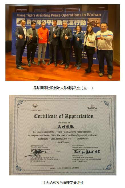2月20日,在一場名為“飛虎隊援助武漢和平行動”的大型慈善募捐活動中,品珍國際控股不僅再次參與了捐贈,還號召中美愛心人士一起援助災區。