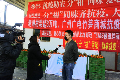 品珍國際控股采購總監鄒磊(右一)在接受饒平電視臺采訪