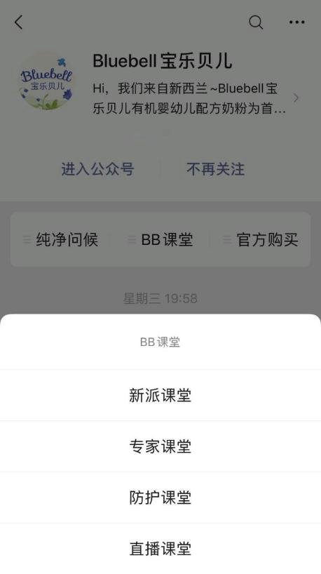 (圖:Bluebell寶樂貝兒官方公眾號開展了各式專家母嬰類課程)