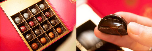 打開后,里面是造型精致的Ganache夾心巧克力。在法語里,Ganach的字面意思就是“巧克力及鮮奶油的混合物”,口味濃厚,通常還加入一些黃油令口感更順滑。有了Dany 大師的加持,這款顏值超高,甜醇濃厚的Ganache夾心巧克力絕對不僅僅只是好看那么簡單,口感也如「情緒」一樣回轉曼妙,令人回味。