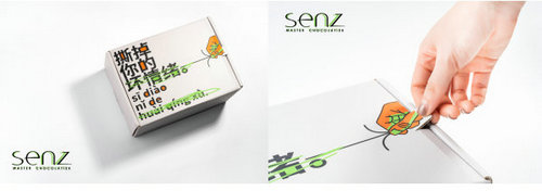 除了上面兩款顏值滿滿的巧克力之外,senz心之巧克力還在2019年年末推出了創意快閃產品【senz情緒盒子】。特制的外盒給人“暴力拆箱”的爽快感,干脆一撕,在無形中讓郁結的壞情緒釋放大半。