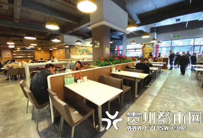 貴陽花溪王記牛肉粉館里,堂食的市民分散就座。 |