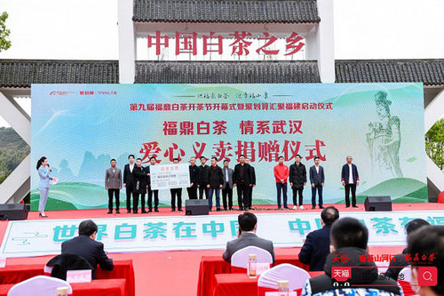 在當天開茶節現場中,還出現暖心的一幕,品品香、天湖、廣福、六妙、鼎白、譽達、瑞達、合熹堂、大沁、畬依茗、中鎮、順茗道、董德13家福鼎茶企各捐贈1000份茶餅,原價300元/餅,義賣價100元/餅,通過手機淘寶進行線上義賣,并現場實時播報售賣情況,不到1小時的時間,13家茶企捐贈茶餅均已售罄,所得義賣貨款130萬元全部捐贈于武漢抗疫一線醫務人員,阿里助力福鼎政府通過線上義賣這樣的公益活動為醫護工作人員送出一片心意,更是13家茶企負責人作為企業家的擔當,樂于奉獻的生動體現。