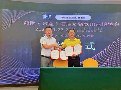 發布會最后,主辦方廣東潮域展覽總經理陳燦濤分別與海南省室內裝飾協會及海南金海酒店用品城發展有限公司簽署了戰略合作協議,合作雙方圍繞著展會開展深入的合作,為展商帶來高價值的參展體驗,也為海南自貿港酒店及餐飲業的發展添薪加火。