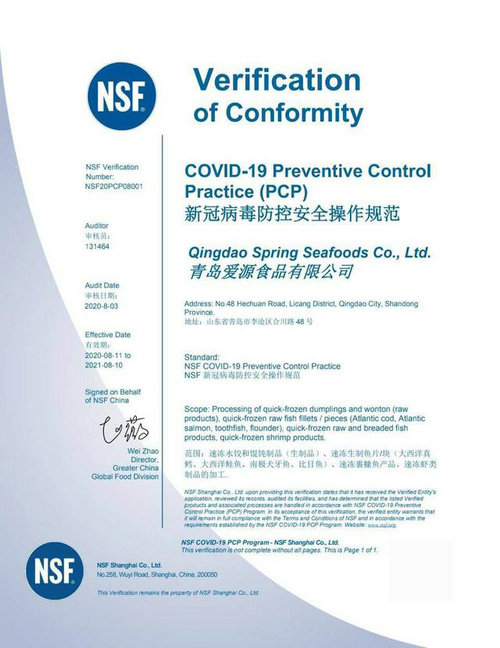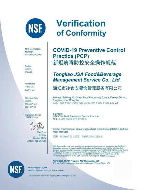 在疫情防控逐漸常態化的背景下,NSF International(以下簡稱"NSF")作為領先的公共衛生和安全的風險管理解決方案提供者,于近期推出了新冠病毒安全防護認證。該項認證可以幫助企業減少生產經營感染/污染的風險,提高人員防控意識,讓企業確信生產和經營可以安全有序地開展,產品被污染風險能夠有效降低。