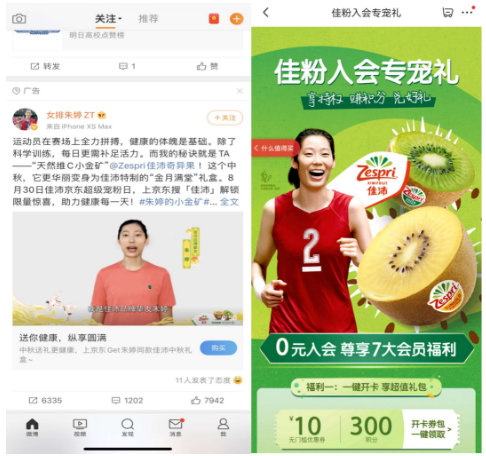 寵愛粉絲,驚喜不斷。除了空降直播間的莎莎子,女排隊長朱婷也發布了寵粉視頻,傾情助陣,創意玩法解鎖粉絲福利。更有0元入會享七大寵粉福利、做任務贏東航“早晚隨心飛”、佳沛E卡和百萬京豆等多重福利,實在寵粉寵得“上頭”。