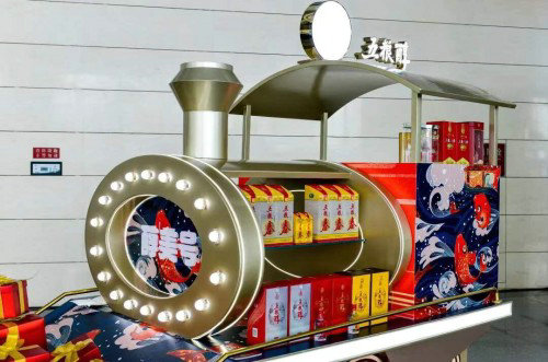 有意思的是,五糧濃香展臺還推出不少造型別致的主題展車,醇美號“小火車”更是讓不少年輕人打卡拍照留念。