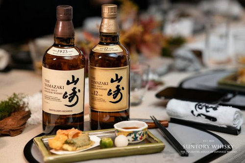 山崎12年單一麥芽威士忌與山崎1923單一麥芽威士忌兩款威士忌作為晚宴配酒