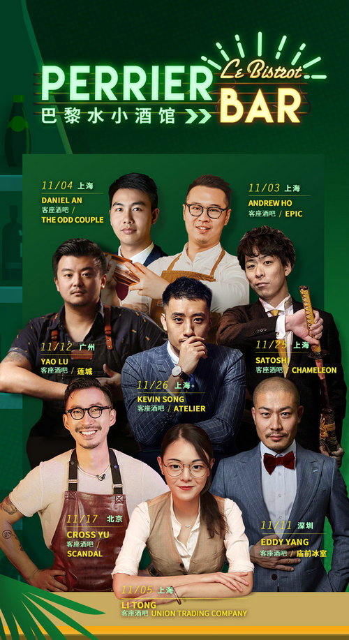 近年來,Perrier不斷大膽嘗試探索調酒藝術邊界,帶來沉浸式線下酒吧體驗,向國內消費者輸送雞尾酒調酒文化。今年全新打造的調酒IP“Perrier小酒館”已于11月3日重新開業,來自全國知名酒吧的8位調酒師,將作為客座調酒師空降北上廣深的酒吧,以Perrier為靈感制作風味特調。這次活動不僅接通了國內酒吧間的溝通橋梁,為調酒師們創造專業交流切磋的機會,也為各地消費者帶來更多極致的味蕾體驗。