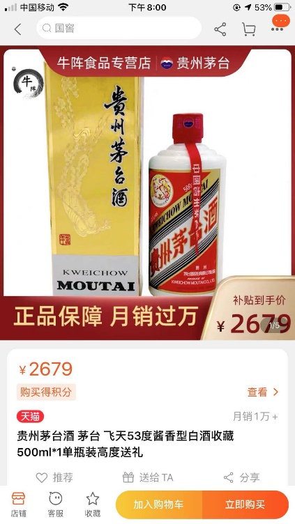 現在2020年的酒也是在網上很容易就能找到,一個賣食品的店鋪說自己月銷過萬,看來真的是茅臺酒有很大的誘惑力啊,人人都想參與進來。有圖有真相的就是想提升和我一樣的廣大消費者,一定要慎重選擇,這年代買酒也需要具備一定的專業知識,具備一定的鑒別能力。