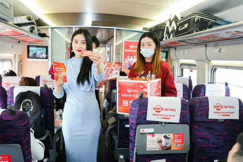 首發儀式現場,品牌專列車廂全方位展示了溫氏食品雄厚的企業實力、過硬的產品質量和極具溫度的品牌精髓“民食為天,食唯安鮮”。正因為這些優勢和品牌理念,溫氏食品才能滿足中國國家羽毛球隊的食品安全與健康標準,成為國羽的官方供應商,這也為大家在疫情當下擔憂食品安全提供了安心的選擇。本次啟動儀式,溫氏食品在新春佳節來臨之際,應景地打出“食唯安鮮·年味到家”口號,以高端品質和優質服務誠意獻禮,現場嘉賓可以在列車開放體驗區領取品牌京東店鋪優惠券,收獲記憶中家的味道。