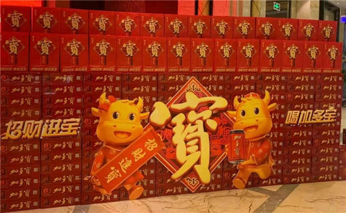 線上抖音挑戰賽祝福滿滿熱火朝天,線下寓意著“招財進寶”的加多寶銷售火爆。尤其是自去年10月開始,加多寶人全員備戰氣勢恢宏,全國范圍內掀起“春節大戰”,扎根下沉市場,積極發力最后一公里。2021年春節前后,在商場、便利店、加油站等各類終端,均可看見加多寶“牛氣沖天”的創意堆頭,鑄就耀目紅色“堡壘”,在渲染節慶氛圍的同時傳遞“加多一寶”的美好祝福,進一步激發消費潛能。