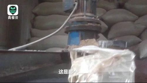 記者掀開雜亂編織袋偽裝,盛放灰白色粉末的是一個無任何標識和名稱的50斤容量的尼龍袋子,灰白色粉末只剩1/3左右。