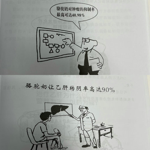 這本介紹駝奶的手冊有107頁,把駝奶形容為“一種近乎神奇的奶,遠離多種慢性疾病”。手冊中提到的疾病多達14種,從“呵護男人前列腺”到“緩解心衰”,甚至還能“幫助乙肝轉陰”。更夸張的是,文中宣稱駝奶“對腫瘤的抑制率最高可達40.98%”。