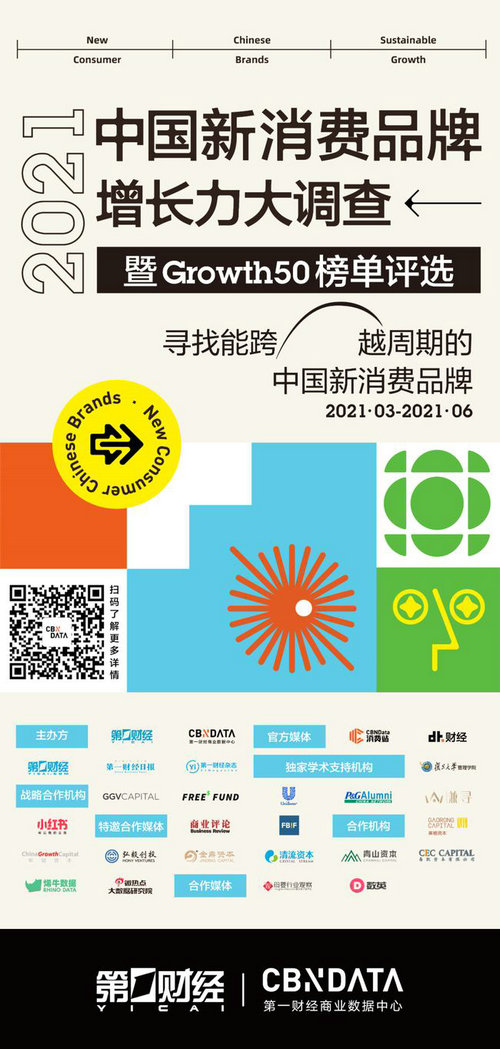 3月,第一財經、第一財經商業數據中心(CBNData)重磅啟動“2021中國新消費品牌增長力大調查暨Growth50榜單評選”項目,尋找中國消費市場極具成長性的品牌。