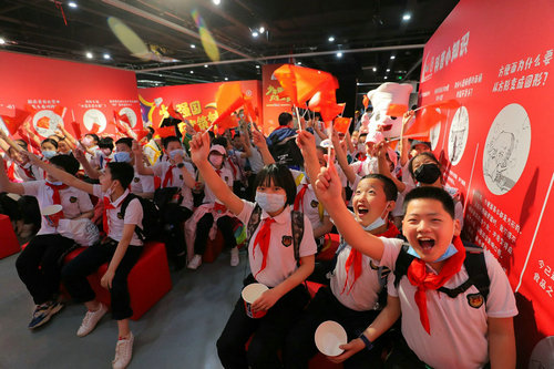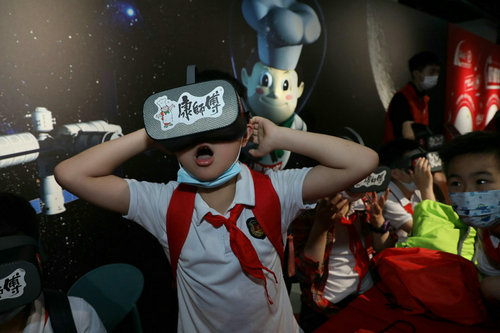 觀摩“國之重器”,了解中國航天發展史,VR體驗“太空旅行”,孩子們在科普展盡情遨游,感受浩瀚宇宙和美麗星空。在航天夢想體驗營中,孩子們一起回顧了空間站發射的精彩瞬間,當看到“長五B”成功升空時,現場爆發出熱烈的歡呼和掌聲,孩子們還合唱《明天會更好》對中國航天獻上祝福。