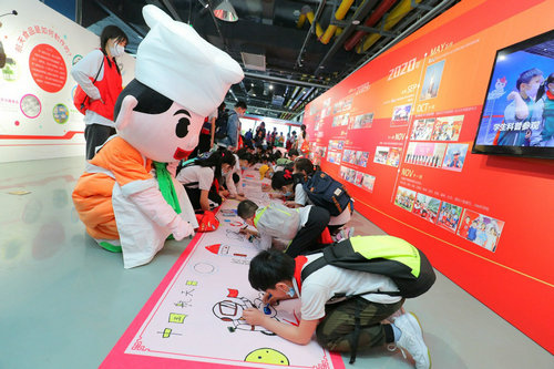 ▲武漢小朋友共繪航天夢想與武漢名勝的畫卷