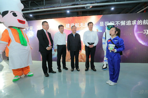 ▲到場嘉賓與小航天迷共同參觀航天科普展