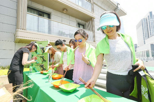 除了干貨滿滿的瑜伽課程,萬多福®開心果還將品牌標志性的亮綠色身影帶到了現場的每個角落,為到場的瑜伽愛好者打造360度的沉浸式瑜伽體驗:萬多福®開心果在露臺設置品牌專區,通過趣味互動游戲提供具有加州風味的開心果小食,以其自然的風味、討喜的外形俘獲了到場的每一位嘉賓。同時,紫衣綠仁、外包裹著奶黃色果殼的品牌大使Mr. Wonderful也親臨現場參與互動,活力四射的它為活動更添一分歡聲笑語。