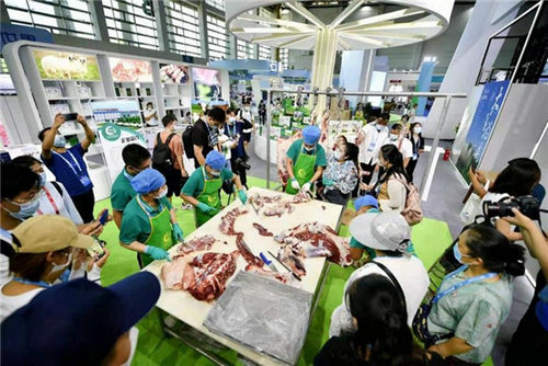 本次博覽會不僅匯聚了優質食材和先進技術設備,還設置了“庖丁解!毕盗屑寄苷寡莼顒雍汀爸恕ご肌辈途拼钆浯笾v堂等活動。專業剔工趣味性演繹牛羊肉的分割、烹飪等技能,為到場的觀眾普及專業的牛羊肉選品知識。據剔工師傅介紹,一頭牛只需2小時就可被分割為70多種產品,而一只羊的分解則只要2分鐘。這場難得一見的現場版“庖丁解!北硌葑尩綀龅挠^眾與采購商嘆為觀止。