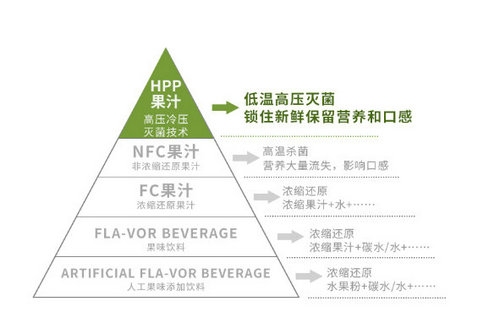水果蔬菜從田間地頭到餐桌上的果汁,在國內一直以來的加工方法基本都是清洗后直接榨汁,然后灌裝前高溫滅菌或灌裝后高溫滅菌,高溫滅菌雖然殺死了細菌,但在一定程度上將水果的營養也給破壞了。水果中的營養成分是水溶性的比較容易吸收,但這些寶貴的維生素B1、維生素C、維生素B12等都經不起高溫的折騰,高溫后果汁中的營養成分含量明顯下降。而且,不難想象的是,高溫肯定會影響果汁口感。如同原相機的像素讓缺點表現更明顯。酸味變得更酸、甜味則更膩。