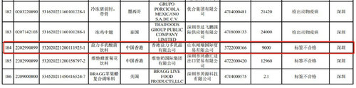 上述益力多產品產地均為中國香港,生產企業為香港益力多乳品有限公司?傮w看來,2022年以來,益力多已有2.428萬千克(24.28噸)產品被“拒之門外”。