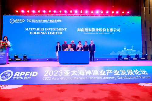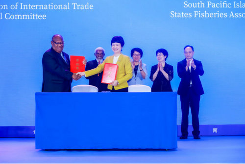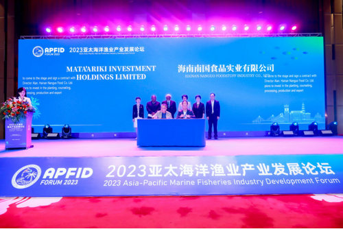 當天開幕式上還進行了簽約儀式。來自瓦努阿圖的MATA'ARIKI INVESTMENT HOLDINGS LIMITED公司與海南翔泰漁業股份有限公司、海南南國食品有限公司達成合作意向,海南省貿促會與南太平洋島嶼國漁業協會簽定合作備忘錄。根據協議內容,海南翔泰漁業股份有限公司將在瓦努阿圖投資建設及運營漁業種苗、飼料、養殖、加工及出口貿易等業務,計劃總投資額人民幣5億元;海南南國食品有限公司計劃在瓦努阿圖投資運營椰子產業的種植輔導、加工生產及出口貿易等業務,計劃總投資1億元;海南省貿促會與南太平洋島嶼國漁業協會將為促進雙方貿易投資及漁業產業發展展開更多合作。