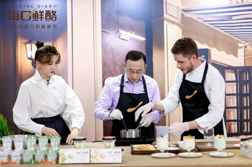 3月15日,《總裁廚房》第二季直播活動在上海前灘中心舉行,這場活動是蒙牛集團“315消費者日”系列活動之一;顒又校膳?偛帽R敏放走進直播間,攜手“每日鮮酪”星級美味品鑒官——米其林法餐經驗星廚戴廣坦(Corentin Delcroix),以“法式甜品制作+現場對話訪談”的形式,與消費者溫情互動。