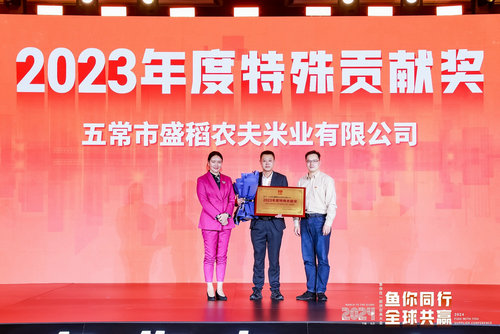 因為盛稻農夫米業的這份堅定與擔當,其與魚你在一起的合作更加深入與密切。大會上,魏總親自為王總頒發了“特殊貢獻獎”榮譽獎牌。這不僅是魚你在一起對盛稻農夫米業過去一年辛勤付出與突出貢獻的充分肯定,更是對其未來持續發展、深化合作的期許。