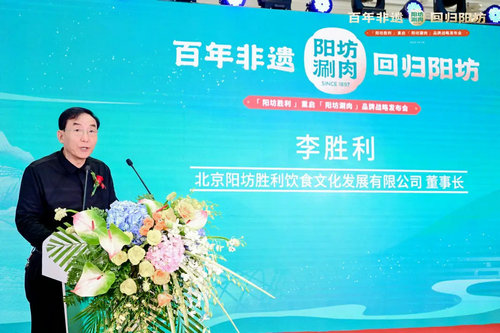 “重回陽坊涮肉,是我們繼續擦亮“陽坊涮肉”這塊金字招牌的義務,也是我們正式扛起“陽坊涮肉”發展大旗的責任,是繼承與發揚陽坊那片熱土自古以來積淀的飲食文化的新起點。重回陽坊涮肉,回歸的是品牌字號,回歸的是兩百多年堅持的品質初心。重回陽坊涮肉品牌,重在品牌的高質量發展與高效傳播,將連同陽坊涮肉文化與老北京美食名片一道,走向更大的世界,讓更多人通過品鑒到陽坊好羊肉,讓更多的人享受到陽坊好羊肉帶來的幸福感!崩罹Ю倏偨浝碓诟麅x式上說道。