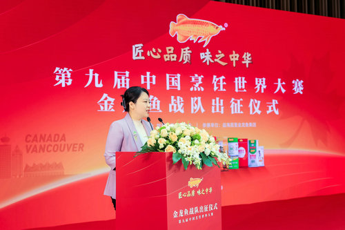 世界中餐業聯合會趙文珂秘書長介紹了本屆國際美食盛會的安排和亮點。她表示金龍魚中華名廚隊的出征將進一步促進中國烹飪事業的崛起與發展,也展現了金龍魚品牌在推動中華烹飪文化方面的持續努力。“相信金龍魚隊將以精湛的技藝和良好的團隊協作取得佳績,在國際化舞臺上為中國烹飪迎來掌聲和喝彩。期待著金龍魚隊在比賽中挖掘中華美食的無限可能,為中餐發展增加‘含金量’和‘含新量’!