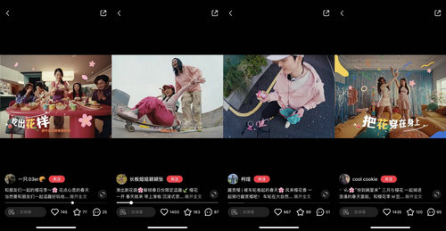 穿出新花樣,@cool cookie的春日趣賞櫻打開方式是為春日穿搭加點新sense,把櫻花限定穿在身上;騎出新花路,@柯煊的春日趣賞櫻打開方式是去馬路上溜溜自己;滑出新花路,@長板姐姐穎穎張選擇叫上好搭子,一起找點樂子;吃出新花樣,@一只03er🥐則是將三五好友約到家里,一起把平平無奇的美食吃出新花樣。春日穿搭、春日美食、春日出游…整支短片融合了多樣春日場景以及用儀式感開啟春天的向往情緒,將M豆作為春日逗趣賞櫻搭子的角色充分展現出來,通過4大垂類博主視角下的春天打開方式,喚起人們對于春天的無限遐想,引導用戶解鎖更多帶上M豆來逗趣賞櫻的新方式,助力品牌滲透春日消費場景,綁定M豆和“春日”、“櫻花”關鍵詞的關聯,建立用戶心智。