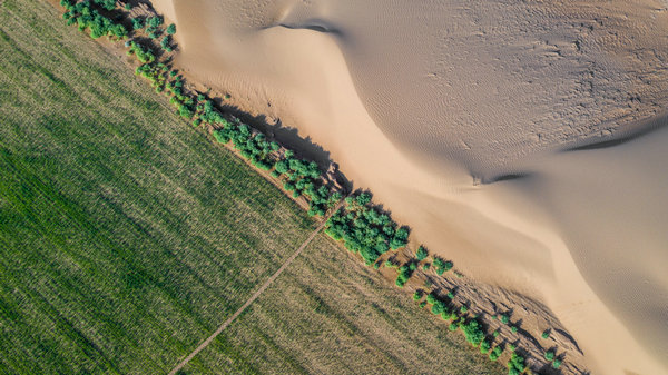 (蒙牛在烏蘭布和沙漠開展的治沙工程)