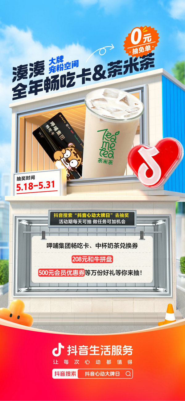 5月17日至5月31日期間,「抖音心動大牌日」湊湊火鍋八周年慶狂歡持續進行中,快打開抖音搜索「抖音心動大牌日」進入活動主會場,查收你的“鍋”潮驚喜吧!