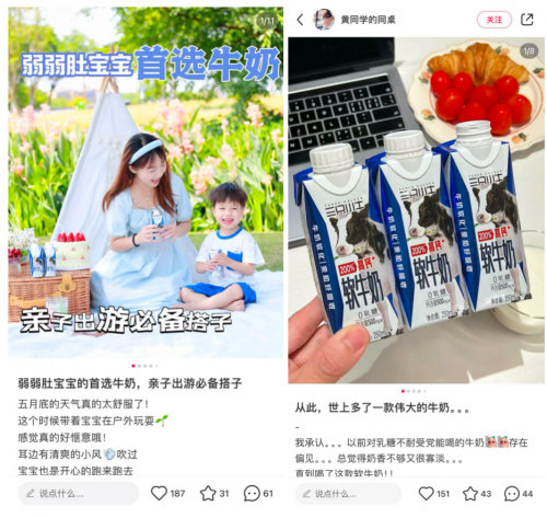 圖為消費者在小紅書平臺發布的高鈣軟牛奶種草貼