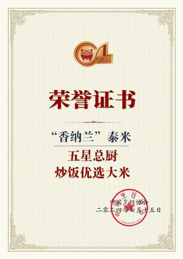圖:香納蘭泰米五星總廚炒飯優選大米榮譽證書頒發