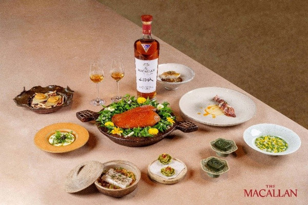 夏至之夜,麥卡倫攜手新銳主廚岳巍(Sean Yue)于上海R.O.W.T餐廳共同呈獻麥卡倫盈鉆“邂逅新生 盈聚新境”晚宴